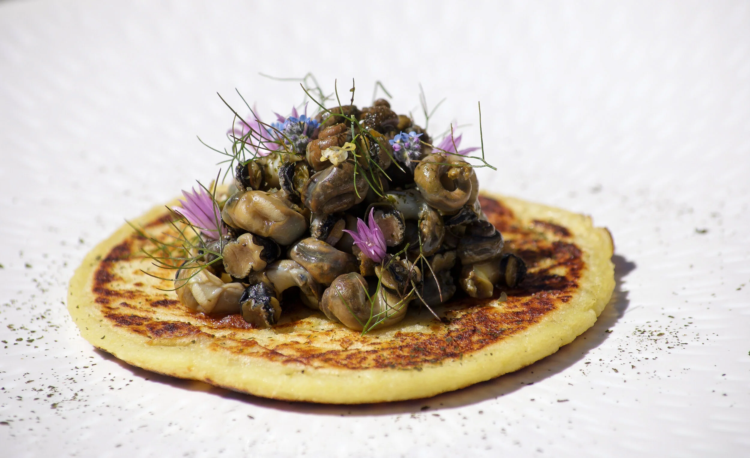 Periwinkles with Fermented Potato Cakes. Photo: Anna King